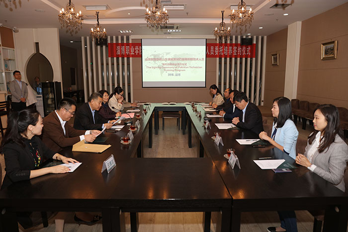 According to the agreement, ZBVI will carry out the training program for Shandong Xinxu Group with the goal of“cultivating Chinese sentiment, grasping professional expertise and cross-culture communicative abilities”. Totally 60 trainees in three successive groups will study Chinese, electronics, Chinese culture and other related courses in ZBVI for 2 years. The first group of 10 students from Pakistan will arrive in Zibo this December.