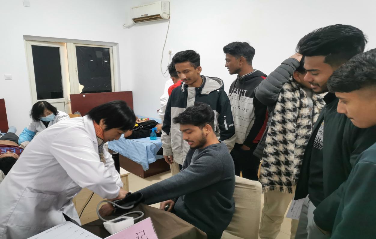 (通讯员 张天舒)1月26日下午,华仁中医医院来学校南校区给住校留学生进行免费义诊,来自摩洛哥、孟加拉国、俄罗斯等国家的近三十名留学生参加了义诊活动。