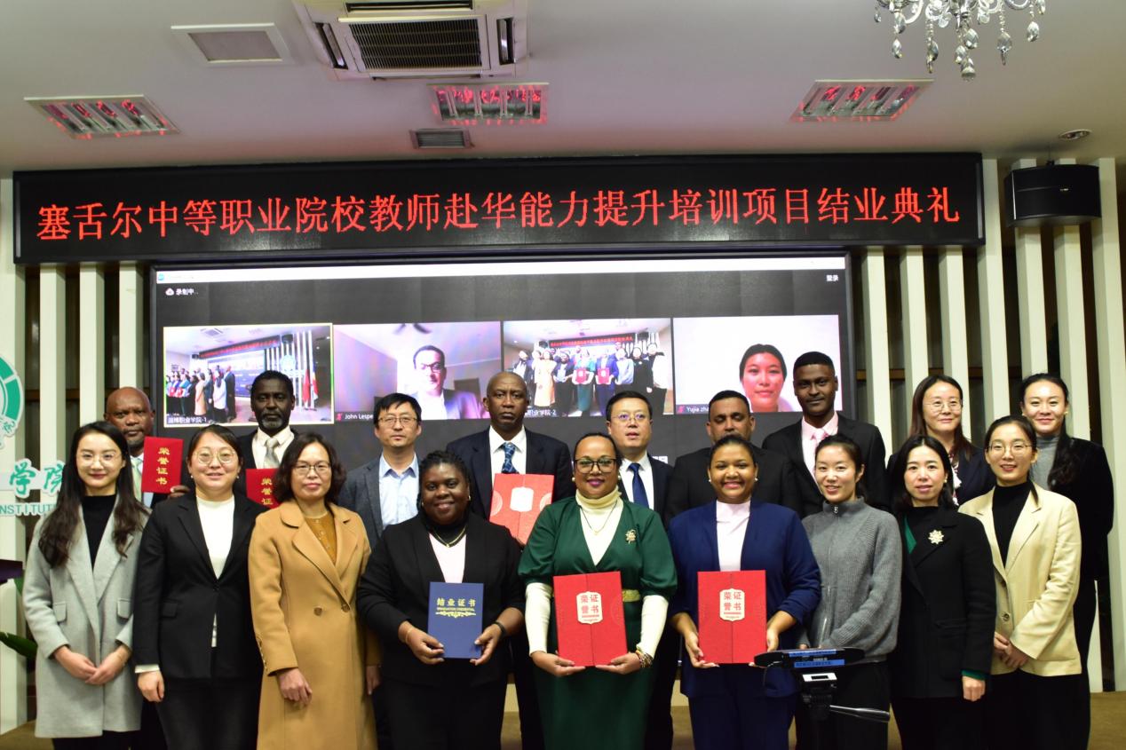 12月7日下午,塞舌尔国家中等职业院校教师来华培训项目结业仪式在学院举行。塞舌尔教育部副部长约翰·莱斯佩伦斯,校领导孙启友、李厚永,中智国际教育科技(北京)有限公司总经理段晓飞,塞舌尔国家中等职业院校来华参培教师代表,武汉交通职业学院、济宁职业技术学院和潍坊职业学院承接培训项目院校代表,以及我院国际学院相关负责人参加了此次活动。