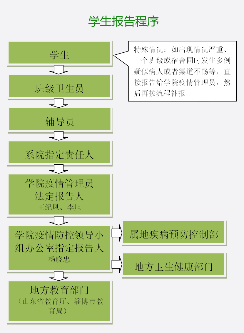 2.学生报告流程各个环节是否畅通?学院疫情管理员、指定医疗机构、属地疾控机构等联系方式是否熟记?