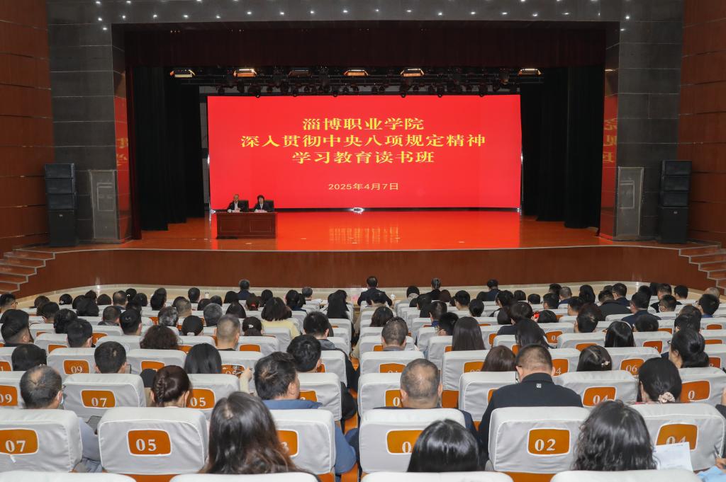 本站讯 4月7日至8日,淄博职业学院深入贯彻中央八项规定精神学习教育读书班暨党委理论学习中心组集体学习举行。学院党委领导班子成员、中层领导干部参加读书班。