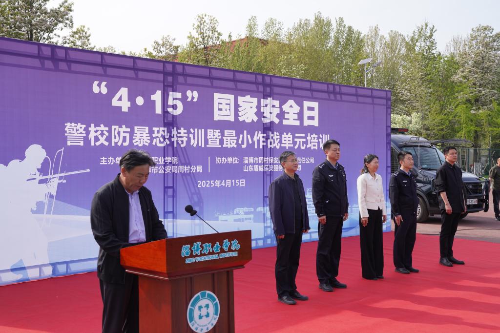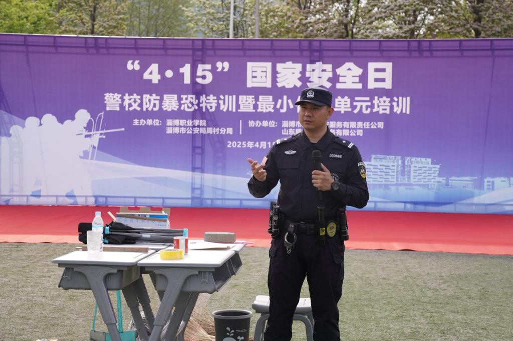 本站讯(通讯员 卢鹏)4月15日下午,学院与淄博市公安局周村分局在南区操场联合开展“4·15”国家安全日警校防暴恐特训暨最小作战单元培训活动。淄博市公安局周村分局党委委员、副局长徐亮,巡逻特警大队主要负责同志安峰,学院党委委员、副院长辛爱梅,以及学生工作处、保卫处负责人出席,由300余名师生组建的最小作战单元参加了此次活动。