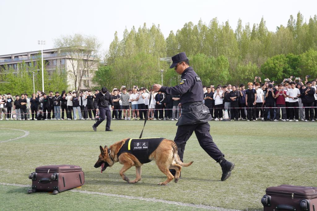 活动期间,淄博市公安局周村分局巡逻特警大队带来了防暴盾牌突进与抓捕带离演练,以及警犬搜爆、扑咬等技能展示。学院安保队伍模拟校园突发暴力事件场景,充分展示出最小作战单元快速响应及有效控制局面的能力。在培训环节,巡逻特警大队教官结合各类暴力突发事件,对最小作战单元的师生进行了全面细致的应急处理和自救互救培训指导。