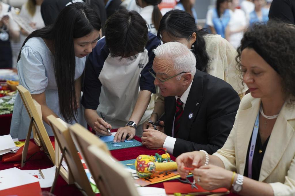 随后,青年代表们沉浸式体验了中华传统文化活动。巧手包制端午香囊、观赏八段锦养生功法、创作非遗漆扇艺术品、体验陶艺、切磋乒乓球技术、感受中医推拿疗法、品味中国茶道文化……大家在交流互动中感受中国传统文化的独特魅力,共同书写了一段跨越国界的文化交流佳话。