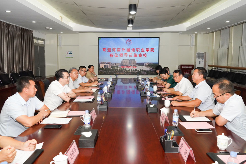 本站讯(通讯员 吕红钢)8月14日下午,海南外国语职业学院党委副书记、校长黄学彬一行8人来申搏考察交流。SUNBET申搏党委副书记、校长孙正,校领导毕思勇及相关负责人陪同接待。