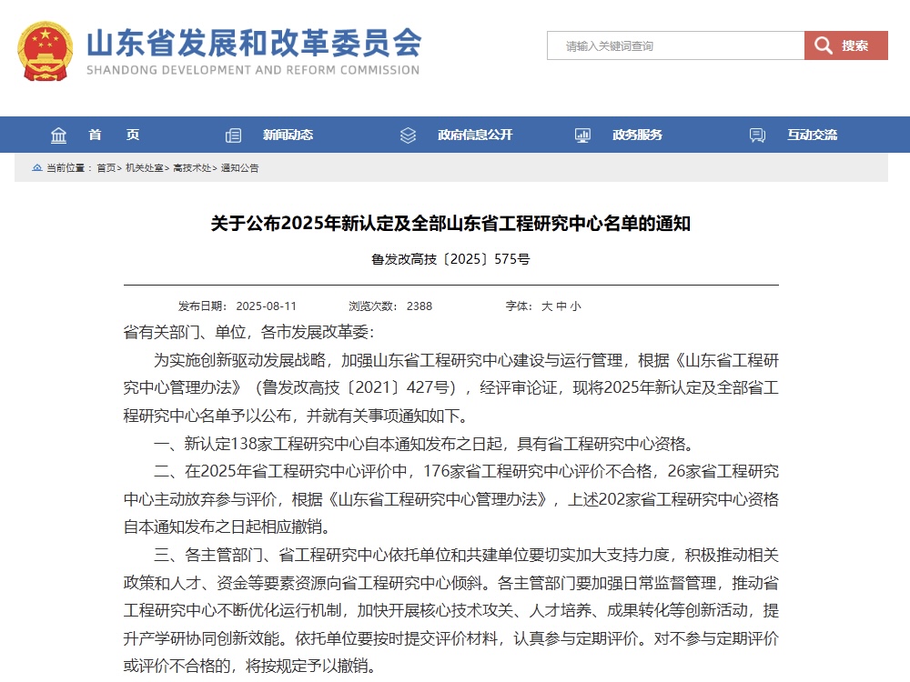 截至目前,通过评价并具有省工程研究中心资格的共有939家,其中,2025年新认定的省工程研究中心共有138家。