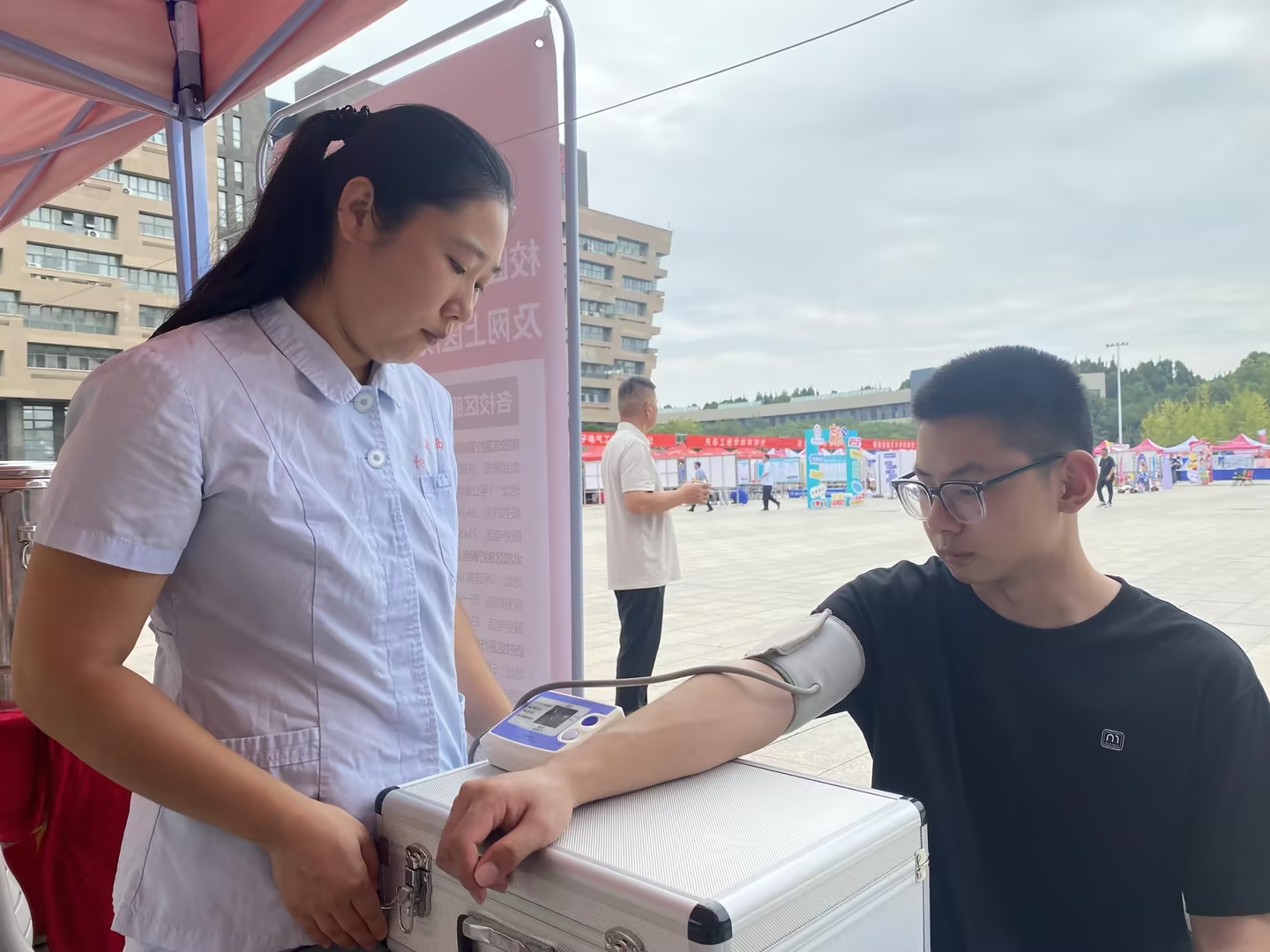 校医院本着“以心迎新,健康先行”的理念,联合淄博市中西医结合医院和周村区疾病预防控制中心,设置义诊服务和健康宣传台,为2025级新生及家长献上一份暖心的“健康开学礼”。