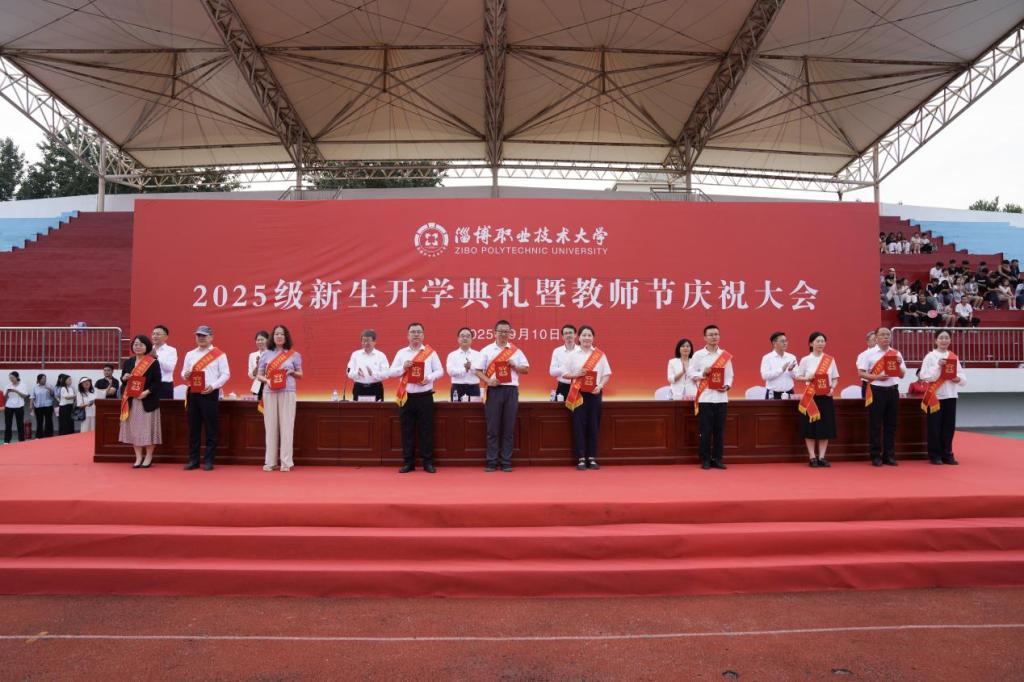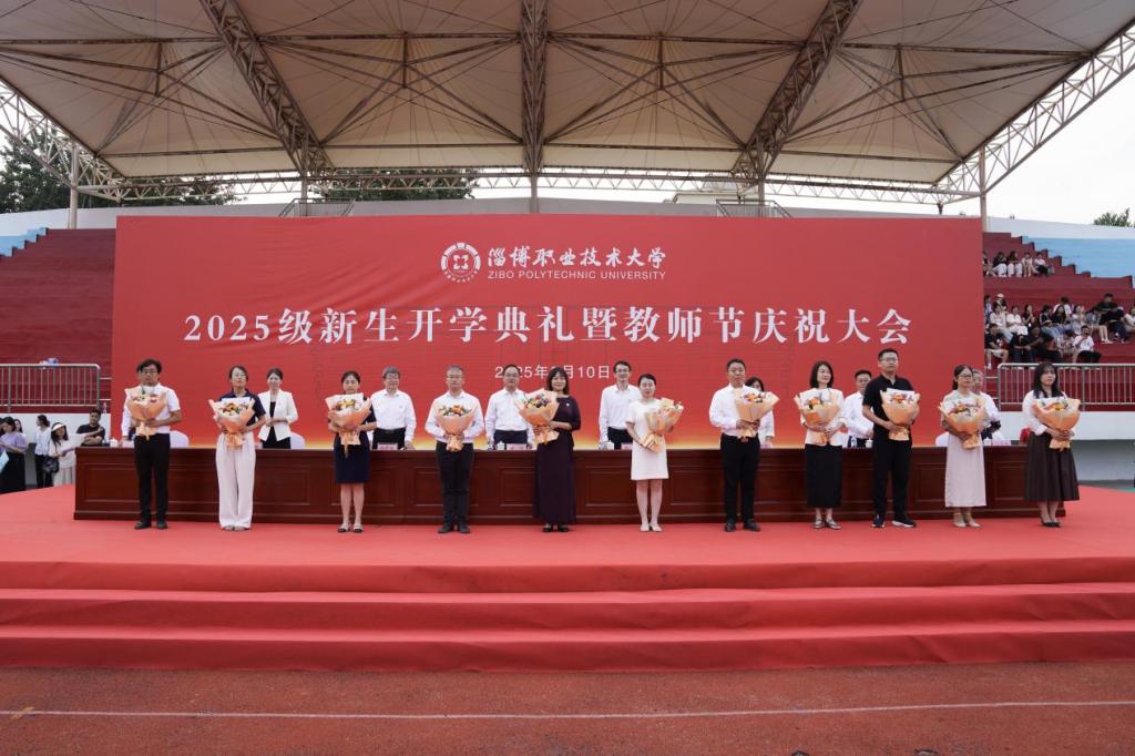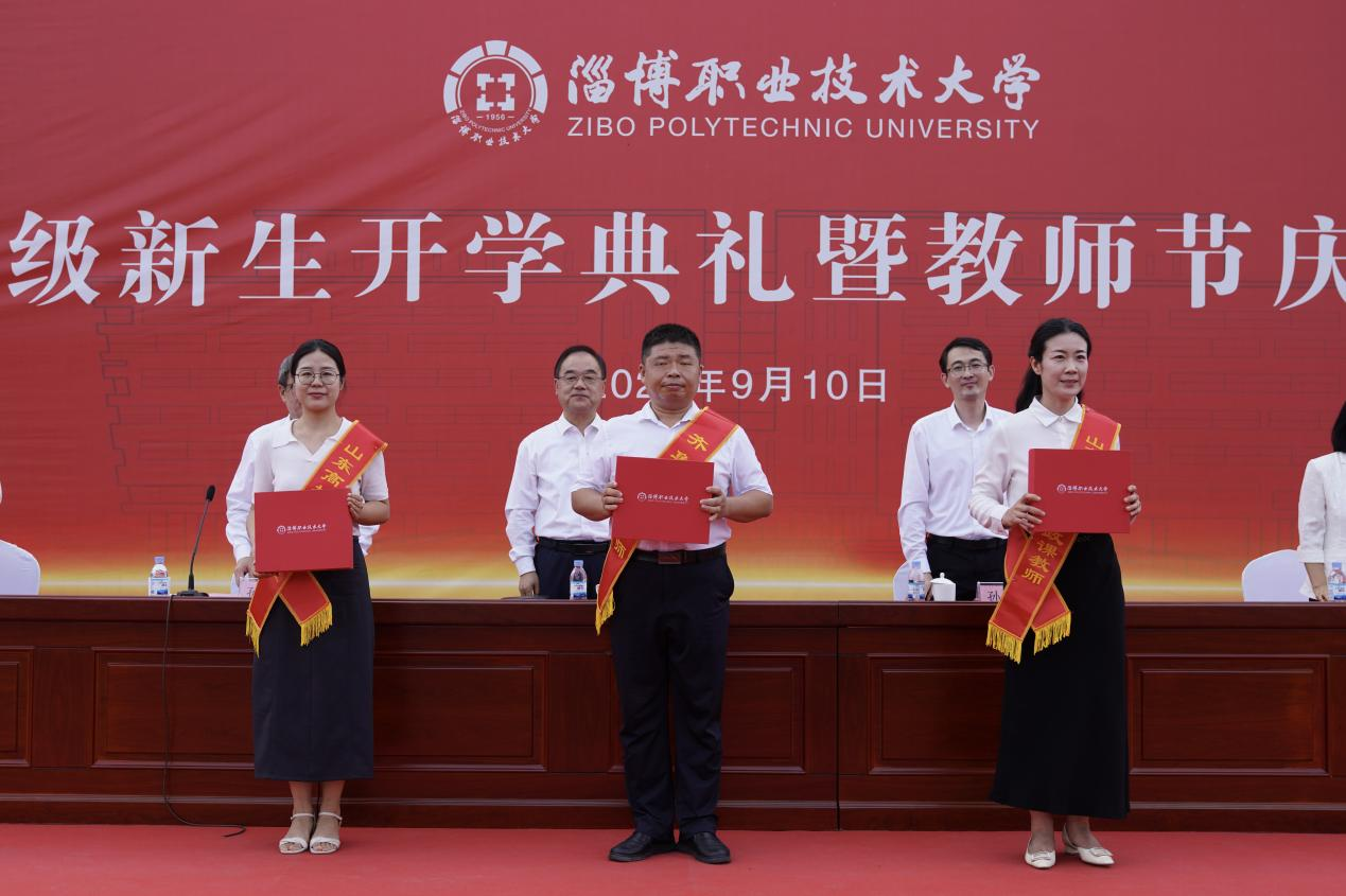 会上宣读表彰名单,“齐鲁最美教师”“山东学校优秀思政课教师”“山东高校优秀辅导员”“淄博教书育人榜样”等获奖教师依次上台领奖。特别值得庆贺的是,在第二届世界职业院校技能大赛中,学校参赛团队荣获3金4银4铜的优异成绩,大赛指导教师在典礼上接受获奖团队学生代表献花。