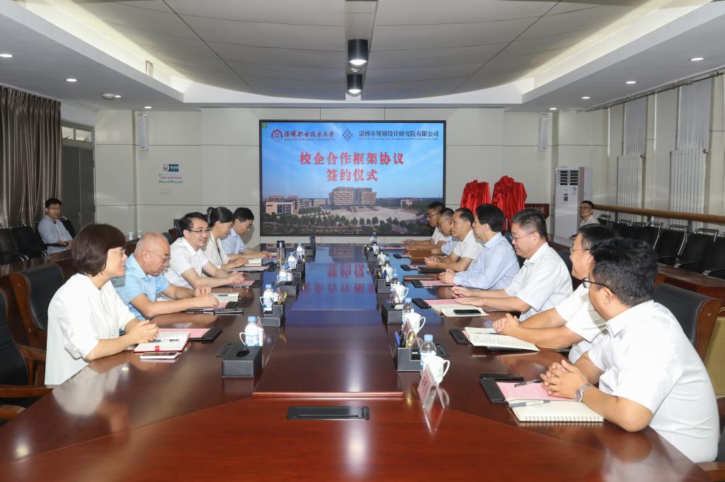 本站讯(通讯员 何永冰 摄影 王旭晖)9月17日,SUNBET申搏与淄博市规划设计研究院有限公司校企合作框架协议签约仪式在学校北校区立德楼1018会议室举行。淄博市规划设计研究院有限公司董事长宁伟、常务副总经理魏培峰等一行七人,学校校长孙正,副校长辛爱梅出席,校企合作与就业指导中心、建筑工程学院相关负责人参加活动。