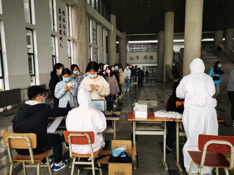 在接到市教育通知后,校医院仅用一个半小时,完成了核酸检测方案制定、物资准备、人员部署、现场实施方案等工作。为保证核酸检测采样工作高效进行,校医院分别在北校区、南校区、西校区迎新广场设立集中检测点,依次进行检测,确保做到“应检尽检”。检测现场,秩序井然,师生按防疫要求,保持安全间隔距离依次进行采样,每位师生的采样时间都按计划有序进行。采样结束后,师生迅速离开,不扎堆、不聚集。