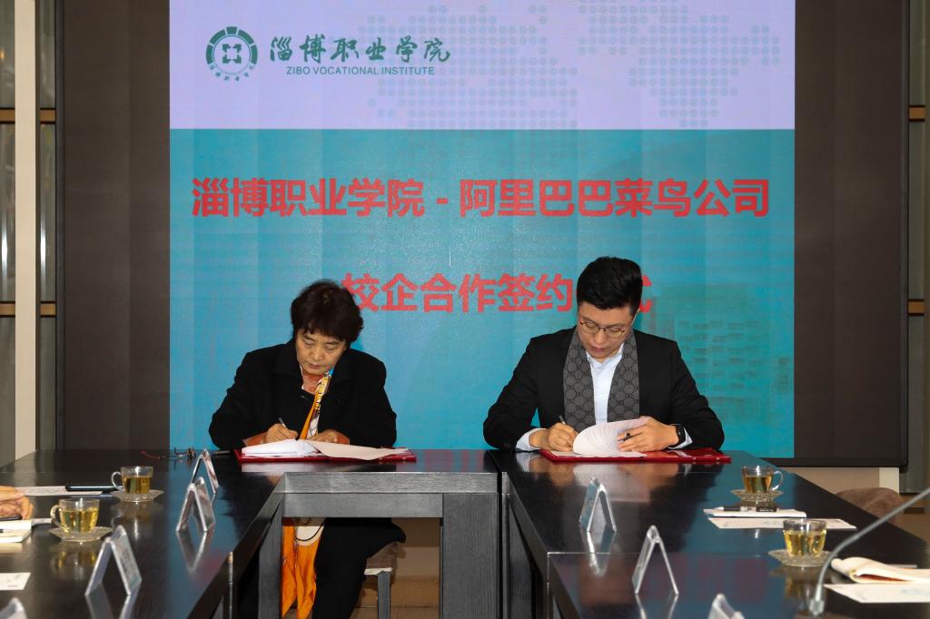本站讯(通讯员 王晓莉、蔡晓莹)3月11日上午,我院与阿里巴巴菜鸟公司校企合作签约仪式在北校区举行。学院党委委员、副院长曾照香,阿里巴巴菜鸟公司校园驿站总经理王耀、华北大区总经理高原、山东区经理赵锐、山东省区主管王浩宇、淄博创客空间商贸有限公司总经理姜家杰,我院校企合作与就业指导处、教务处、工商管理学院等部门相关人员出席了签约仪式。仪式由工商管理学院负责人毕思勇主持。