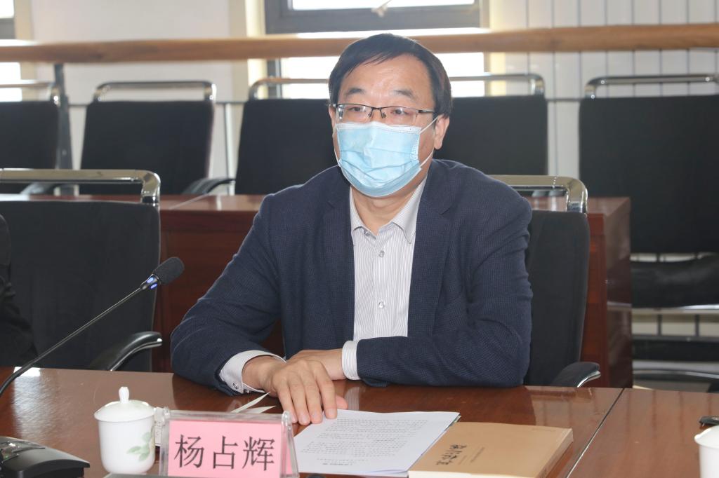 张爱民对杨占辉一行表示热烈欢迎,简要介绍了学院办学情况,汇报了党史学习教育开展情况及下一步从严从实抓好党史学习教育打算。