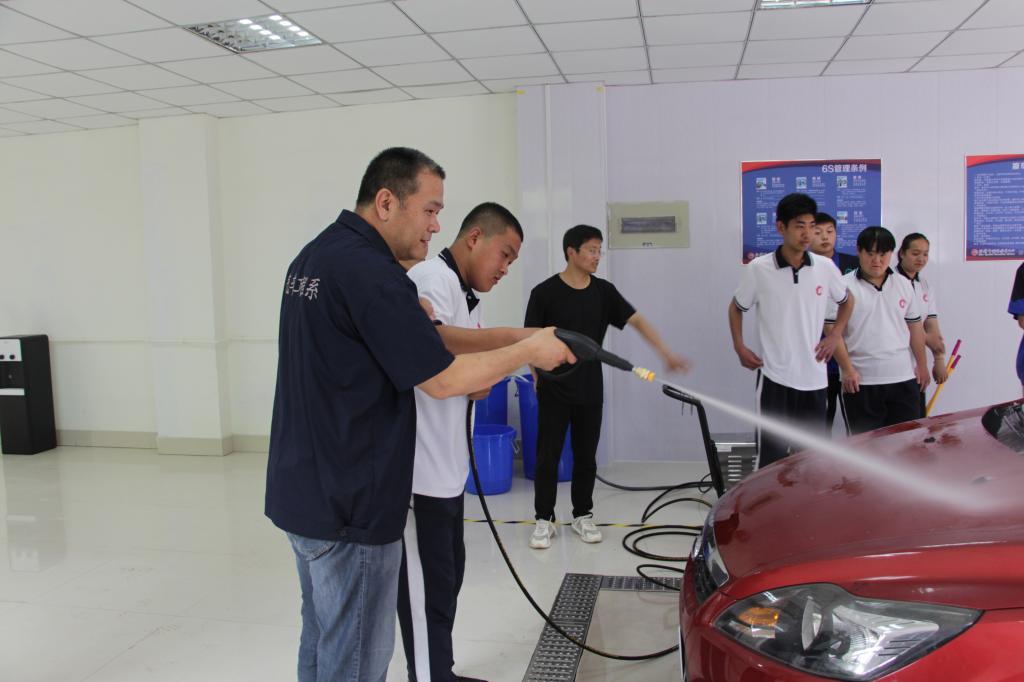 仪式结束后,汽车工程系党员教师张军现场对市特教中心师生们进行了洗车服务指导教学。