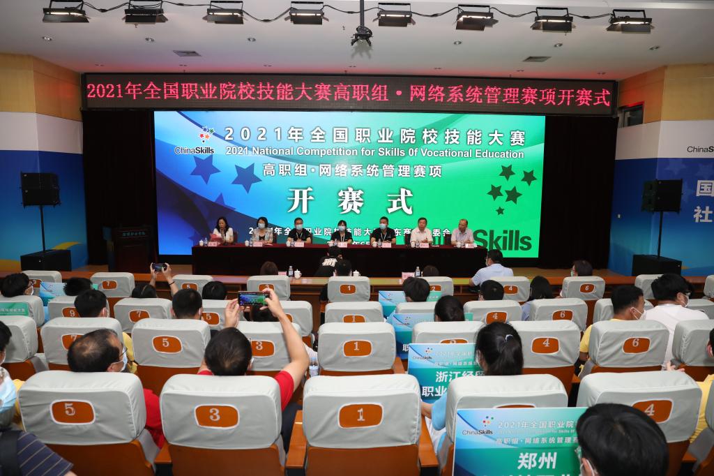本站讯 6月21日下午,2021年全国职业院校技能大赛高职组网络系统管理赛项在我院开赛。淄博市教育局党组成员、市教研室党总支书记李铮声出席开赛式并宣布大赛开赛,淄博市教育局职业教育与继续教育科科长孙隆洲参加,我院党委副书记、院长杨百梅致欢迎辞,院党委委员、副院长高霞主持开赛式。