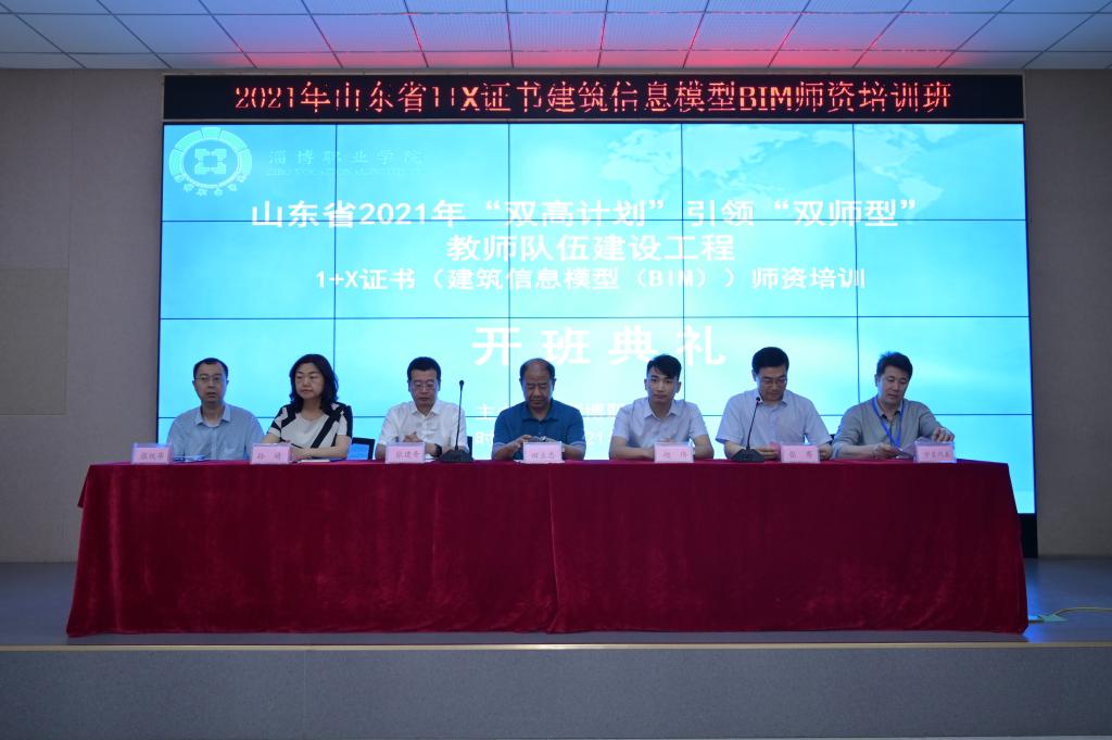 本站讯(通讯员 张统华)6月25日,山东省2021年“双高计划”引领“双师型”教师队伍建设工程1+X(建筑信息模型)师资培训班在我院南区建筑安全和装配式建筑施工安全体验教育基地报告厅开班。中国建设教育协会教育技术专业委员会秘书长、廊坊中科建筑产业化创新研究中心副主任张建奇,上海鲁班软件股份有限公司院校事业部总监赵伟,学院党委委员、副院长田立忠,建筑工程学院院长张骞和党总支书记孙婧,来自全省高职院校的40名学员参加活动。开班典礼由建筑工程学院院长张骞主持。