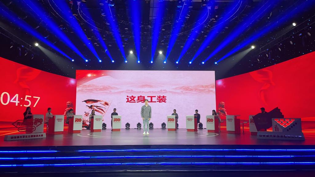 张书溢同学的参赛作品《不忘来时路薪火永相传》讲述了自己家中祖孙三代人关于忠诚理想、坚定信念、薪火相传的故事。一件白大褂是奶奶用一辈子传承的医者仁心,是爸爸用行动恪守的职责使命,是自己无比骄傲的一身赤诚。他承诺着作为一名当代大学生,要接好前辈们传承下来的接力棒,恪守初心使命,扎根基层,在实践中磨砺和成长,把自己的才华书写在中华大地上,书写在齐鲁大地上,走好他们这代人的长征路。姚家福同学的参赛作品《这身工装》表达了自己励志扎根基层,坚定听党话、跟党走的决心和信心。作为职业院校的一名学生,他从自己所着的工装谈起,讲述了新中国第一代钻井工人王进喜等优秀共产党员的先进事迹和动人故事,使观众感受到了工人群体在革命中的坚实力量和在工作岗位上的伟大贡献。这身工装不仅仅是一个职业的标识,它是千千万万基层工人的铠甲。他告诉大家新时代的工人,也要如山崖伫立,如长松挺身,把自身微小的光芒融入进实现中华民族伟大复兴的熊熊烈火之中,为实现中华民族的伟大复兴贡献自己的青春力量。