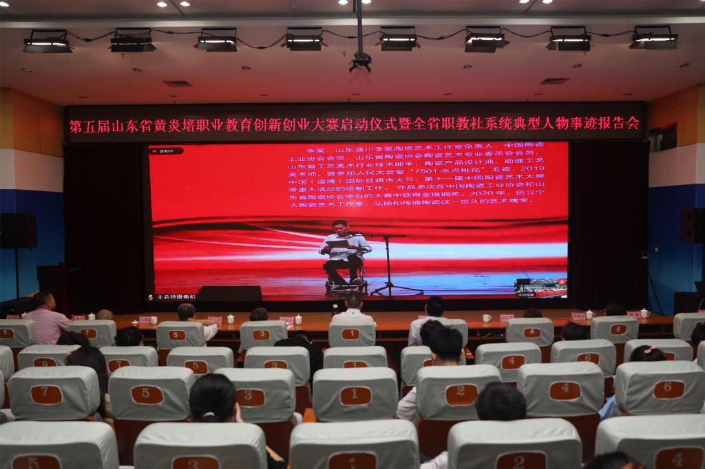 省政协原副主席、省中华职教社主任郭爱玲出席活动并讲话。会上,启动了第五届山东省黄岩培职业教育创新创业大赛。在全省职教社系统典型人物事迹报告会阶段,我院陶瓷琉璃艺术系毕业生李昊作为优秀毕业生代表发言。李昊用朴实的语言、生动的实例,深情讲述了自己求学期间在老师和同学的关怀帮助下,不断进步,为自己创业打下坚实专业基础的故事。真实的故事、感人的事迹、动人的精神,赢得了现场观众的阵阵掌声。