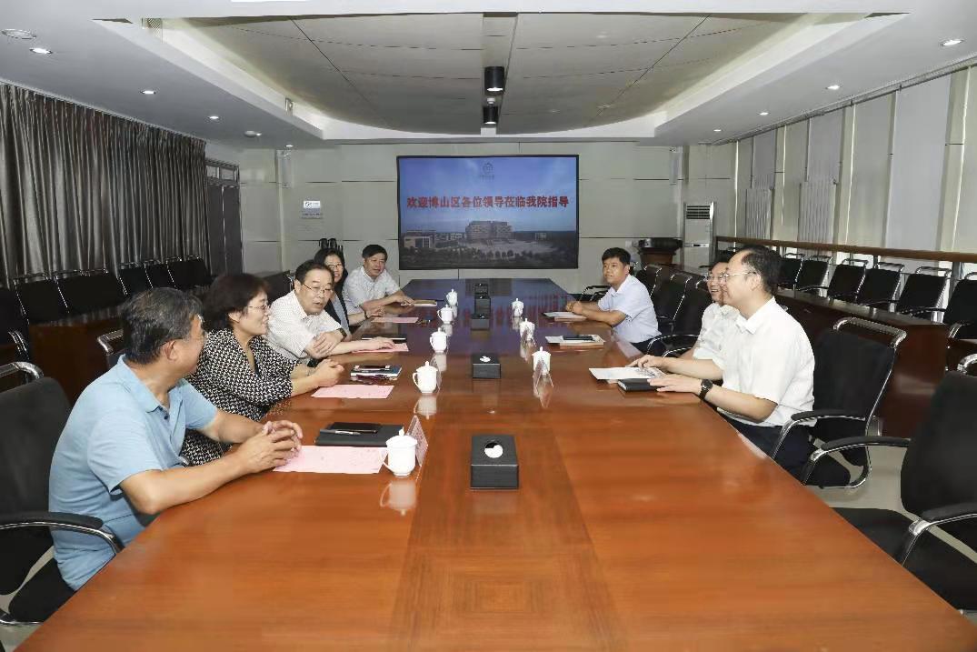 本站讯 8月4日下午,博山区委书记刘忠远,博山区委常委、组织部部长杨发磊,博山区人社局局长于芳文一行三人来我院调研。学院党委书记张爱民,党委副书记、院长杨百梅,党委委员、副院长曾照香,党委委员、组织人事处张晓锋在立德楼第一会议室与来访领导进行了座谈交流,学院有关部门负责人参加座谈。