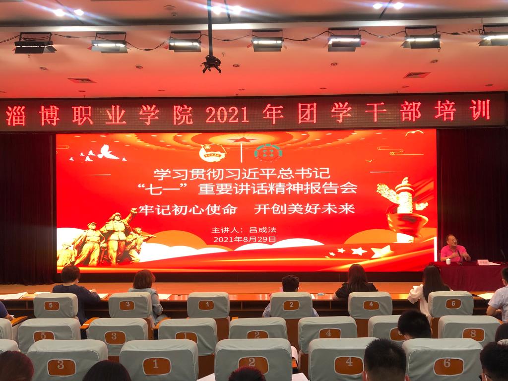 本站讯(通讯员 刘琦然、刘文政)8月29日上午,我院在立德楼报告厅举办2021年团学干部培训暨学习贯彻习近平总书记“七一”重要讲话精神专题报告会。学生处、团委相关人员,各系院分管学生工作负责人、学生科长、团总支负责人、近三年新进辅导员,学院“青马班”主要成员、各系院学生会主要成员、团支部书记代表等400余人参加。培训由学院党委委员、组织人事处处长张晓锋主持。