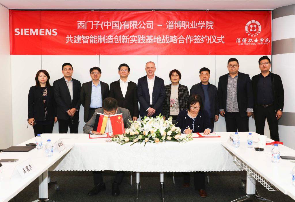 本站讯(通讯员 李万军)11月9日下午,学校党委副书记、院长杨百梅,学校党委委员、副院长曾照香,智能制造学院院长潘学海等一行五人到北京西门子大厦洽谈校企共建淄博职业学院-西门子(中国)智能制造创新实践基地事宜,并签署合作协议。