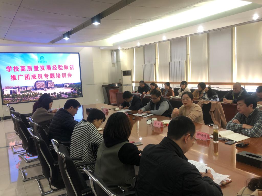 本站讯(通讯员 张倩)近期,党委书记张爱民召开专题会议,安排部署对学校建设发展,特别是“双高计划”启动以来相关工作的经验做法进行凝练、总结,形成典型经验做法,通过各种渠道宣传推介,真正发挥好学校示范引领作用。院办公室(党委办公室)作为牵头部门,迅速行动,结合部门开展的“一专多能”专项培训,于11月12日邀请市委改革办副主任王帝来校举办高质量发展经验做法推广专题培训,党委委员、组织人事处处长张晓锋出席并主持,各部门相关负责同志60余人参加培训。