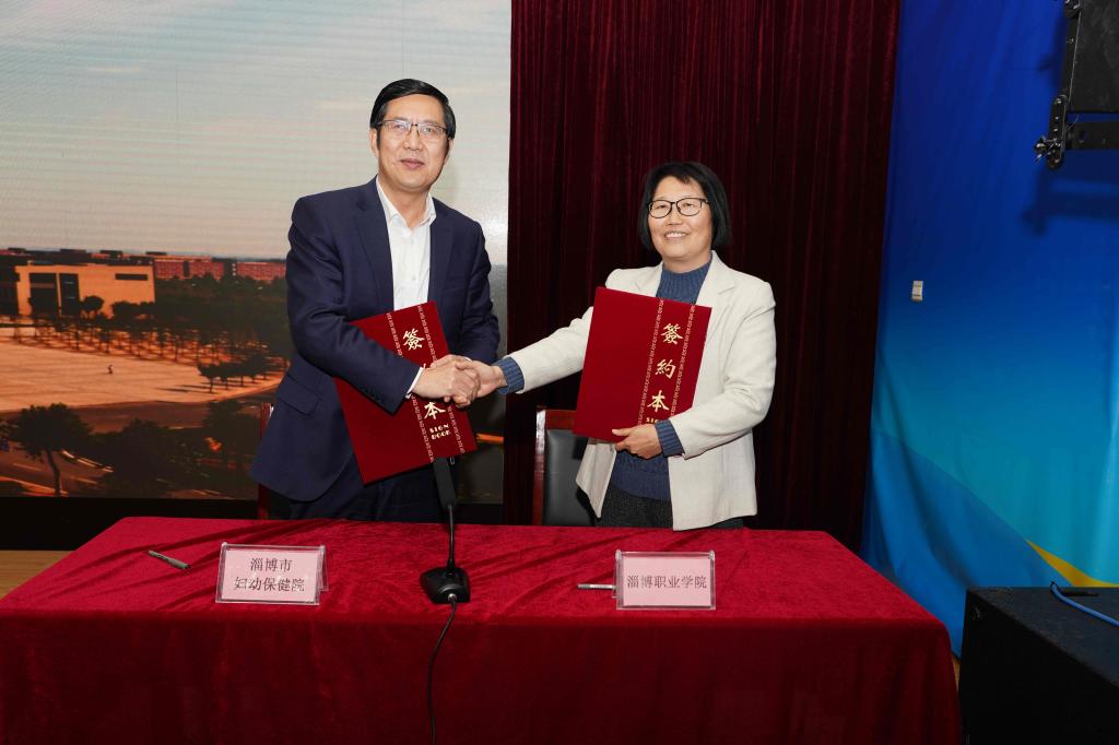 仪式上,杨百梅与叶大勇代表双方签订了“淄博职业学院—淄博市妇幼保健院战略合作框架协议”。