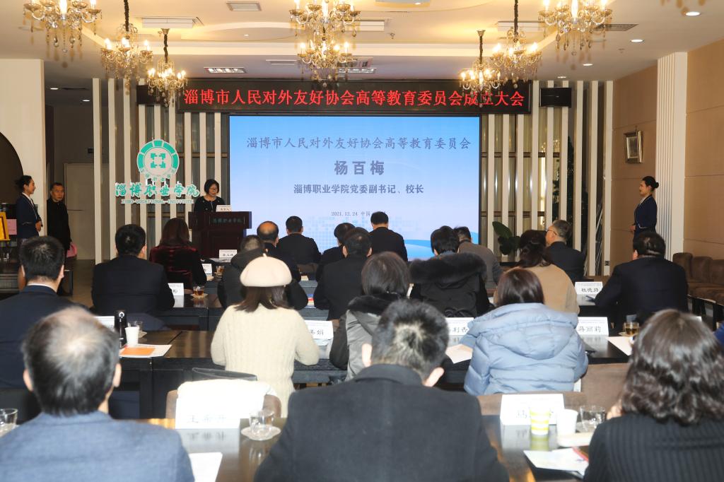 本站讯(通讯员 王雅菲)12月24日,由淄博市人民对外友好协会主办,淄博职业学院承办的淄博市人民对外友好协会高等教育委员会成立大会暨“后疫情时代高校国际交流与合作”交流研讨会在申搏隆重召开。淄博市委外事工作委员会办公室主任、淄博市人民政府外事办公室党组书记路玉田,淄博市委教育工作委员会副书记宋乐宝,淄博市人民政府外事办公室党组成员、淄博市人民对外友好协会常务副会长张新正;申搏党委副书记、校长杨百梅,党委副书记姜义林,国际学院院长朱爱青;山东理工大学、山东轻工职业学院、淄博师范高等专科学校、淄博市技师学院、齐鲁医药学院、山东工业职业学院、山东水利技师学院、淄博职业学院等8所驻淄高校的分管国际交流的领导和负责人参加此次大会。