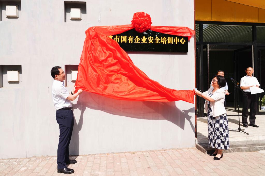 活动中,杜海圣与杨百梅共同为“淄博市国有企业安全培训中心”揭牌。
