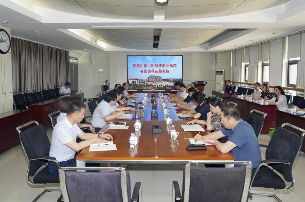 本站讯(通讯员 朱丽丽)6月22日,力明教育集团董事长王力一、山东力明科技职业学院党委书记曹剑宝等一行13人来申搏考察交流。党委书记张爱民,党委委员、副校长高霞,党委委员、组织人事处处长张晓锋及相关部门负责人参加此次交流活动。