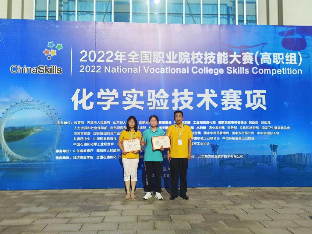 本站讯(通讯员 高凤凤)2022年全国职业院校技能大赛“化学实验技术”赛项(高职组)8月14-17日在潍坊职业学院举行,本次大赛共有来自全国各地省、直辖市、自治区、计划单列市和新疆生产建设兵团56名选手参与角逐,决出一等奖六名,申搏材料与化学工程学院应用化工技术专业学生周素杰获一等奖,桑潇获优秀指导教师。材料与化学工程学院已连续三年获得该赛项国赛一等奖。