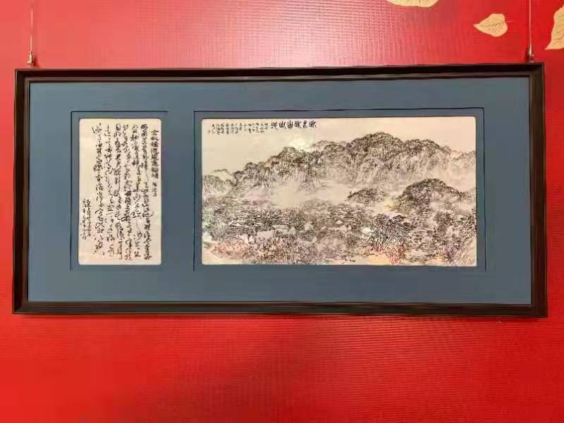 刻瓷作品《此水此山此地》为配合山东省电视台制作的纪念焦裕禄诞辰100周年大型记录片《此水此山此地----寻根焦裕禄精神》而创作。作品历时一个月,用淄博刻瓷这种集绘画、书法、錾刻于一身,融笔、墨、色、刀为一体的非遗艺术形式,展现了焦裕禄高小求学时每日经过阚家泉,励志家国的场景;青年时代登上岳阳山环顾家乡,满怀对新中国的向往,南下别故乡的场景;阔别家乡十多年后,生命接近尾声时,与母亲、家人团聚的三个场景,生动的展示了焦裕禄同志的故乡情,贯穿整个纪录片始终,起到了串联线的重要作用。在发布会现场,该作品单独呈现在迎宾墙上,受到与会人员长时间的驻足欣赏和称赞。