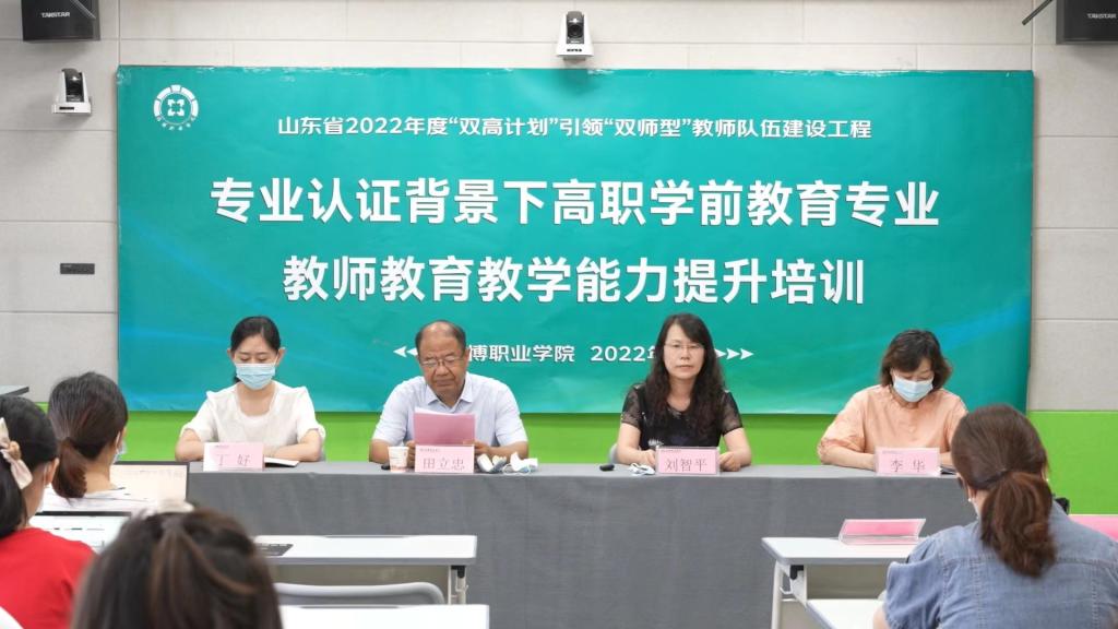 本站讯(通讯员 张洁)8月19日,山东省2022年“双高计划”引领“双师型”教师队伍建设工程——专业认证背景下高职学前教育专业教师教育教学能力提升培训项目圆满结束。本次培训由申搏学前教育学院承办,分线上和线下两个会场。学前教育学院院长刘智平主持开班仪式,学校党委委员、副校长田立忠出席开班仪式并致辞。来自全省近二十所高职院校的共40名教师及申搏学前教育学院部分教师参加了此次培训。