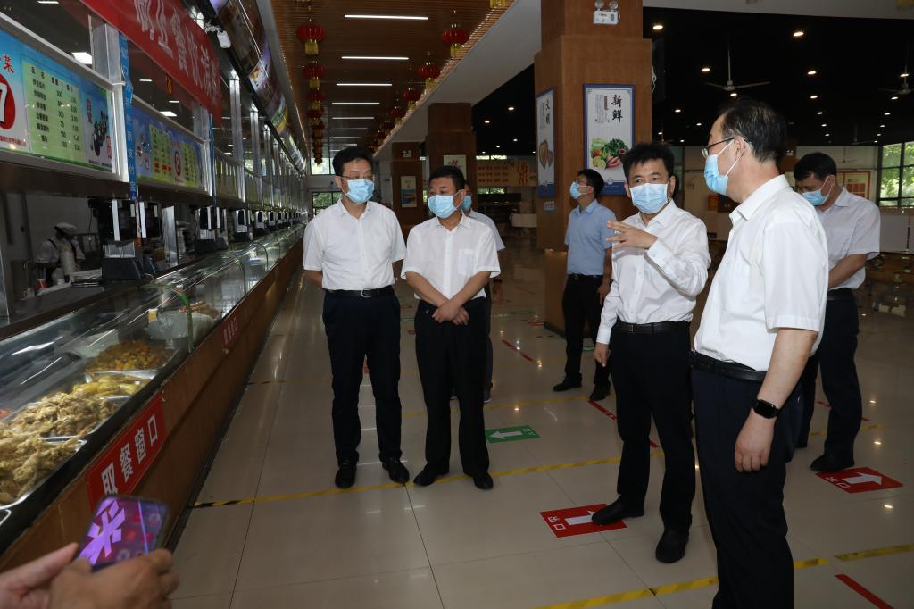 张延廷实地察看了人员进出、物资存放点、留观点、核酸检测点设置情况和校园防控监管、师生就餐、课堂授课、师生实训等管理情况,听取了有关负责人关于疫情防控措施落实情况的汇报。