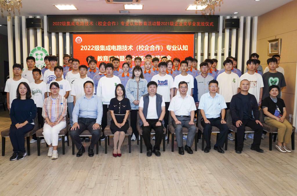 本站讯(通讯员 韩振花)9月27日上午,电子电气工程学院2022级集成电路技术(校企合作)专业认知教育活动暨2021级企业奖学金发放仪式在尊客举行。联华电子股份有限公司副总裁江心标,申搏党委委员、组织人事处处长张晓锋,电子电气工程学院院长白坤海,相关教师、集成电路技术专业学生等参加了本次活动。