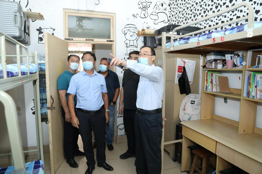 检查组一行先后来到化工实训室、西校区学生宿舍2号公寓、学生食堂、超市、南校区校门、校医院门诊、留学生8号公寓,详细了解各部门安全管理制度及执行、安全设施保障和运行、安全教育普及等情况。