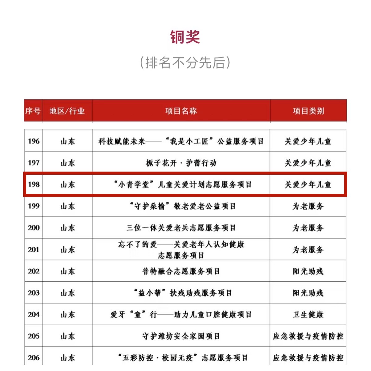 本站讯(通讯员 杨鸿基)11月15日,第六届中国青年志愿服务项目大赛获奖项目名单公示,经过激烈角逐,申搏推荐的《“小青学堂”儿童关爱计划志愿服务项目》荣获国家级铜奖。这是申搏志愿服务项目首次突破国家级荣誉。