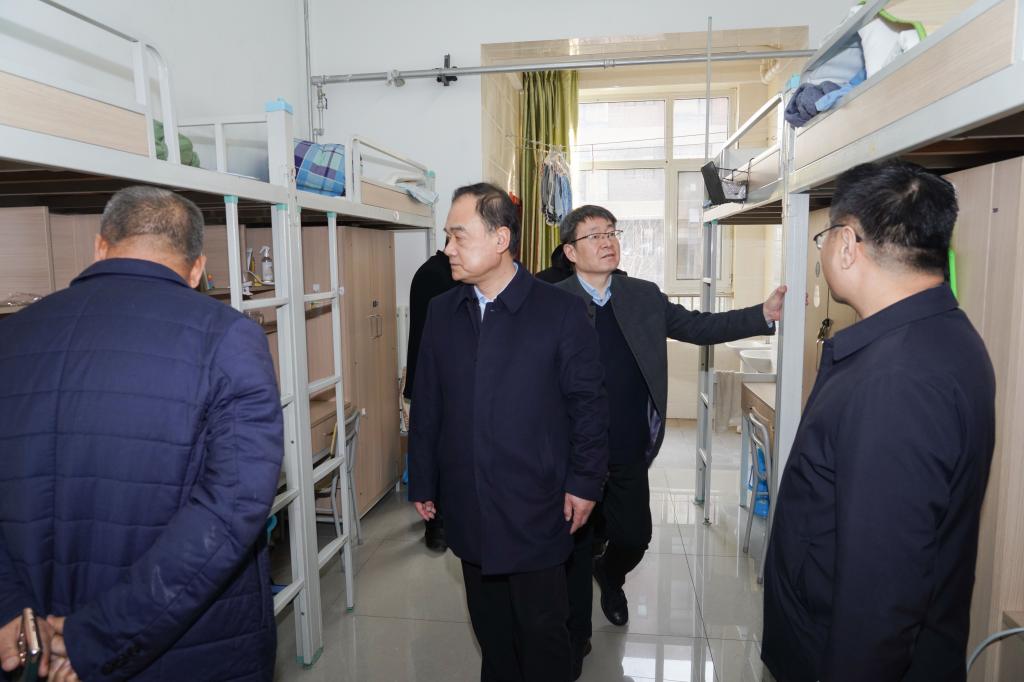 检查组一行先后到超市、学生公寓、餐厅、健康驿站、化工实验室、智能装备实训基地、教职工单身公寓、防疫物资储备仓库、陶瓷琉璃实训中心、联防联控中心等师生重要活动场所,开展安全检查和隐患排查工作。