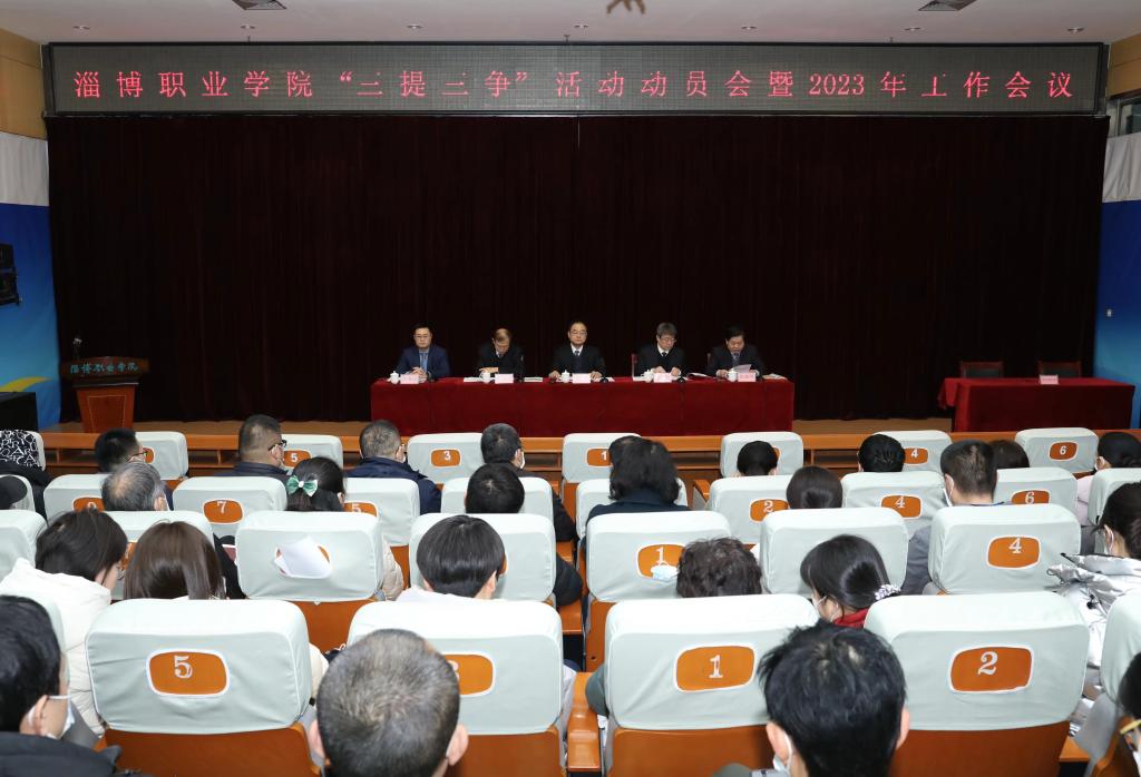 会上,耿玉河宣读学校“三提三争”活动实施方案。学校以“三提三争”为主题,以双高建设工作为主线,聚力推动“双高计划”建设进阶升档、聚力推动专业建设至精至强、聚力推动人才培养创新提质、聚力推动教科研和社会服务扩容增效、聚力推动师资队伍双师双能、聚力推动国际办学领跑争先、聚力推动治理保障提效赋能,动员全校上下提效率争先锋、提效能争先例、提效益争先进。全面提振精神状态、提升素质能力,不断开创学校高质量发展新局面。