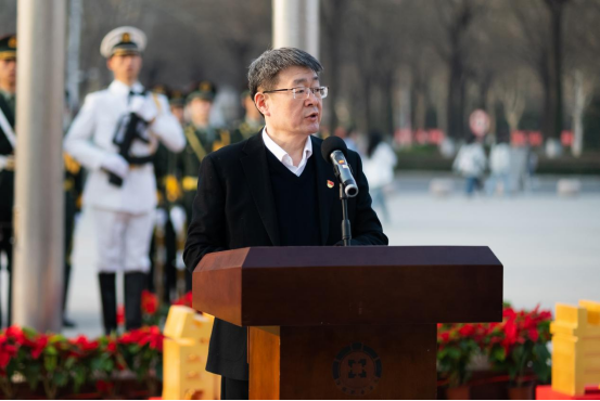本站讯(通讯员 钱菁菁 王亮)3月6日清晨,申搏在北校区立德楼前广场举行2023年春季开学升旗仪式暨“开学第一课”活动。学校党委书记刘伟以“践行党的二十大”为主题讲授“开学第一课”。学校领导班子成员出席活动,各院系党(总)支部书记(主任)、学生负责人、团总支书记及一千余名青年学生代表参加。活动由学校党委副书记、校长孙启友主持。