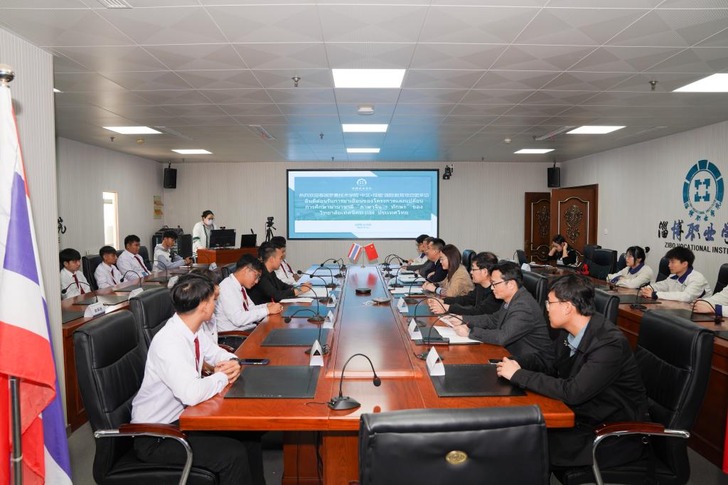 本站讯(通讯员 宋春晓)3月14日,泰国罗勇府罗勇技术学院师生一行12人来访申搏,开始为期10天的“中文+技能”国际教育项目专题研修活动。研修活动开班典礼在南校区尚德楼同声传译实训室举行,泰国罗勇技术学院师生、国际学院负责人及教师代表、智能制造学院师生代表参加了此次典礼。