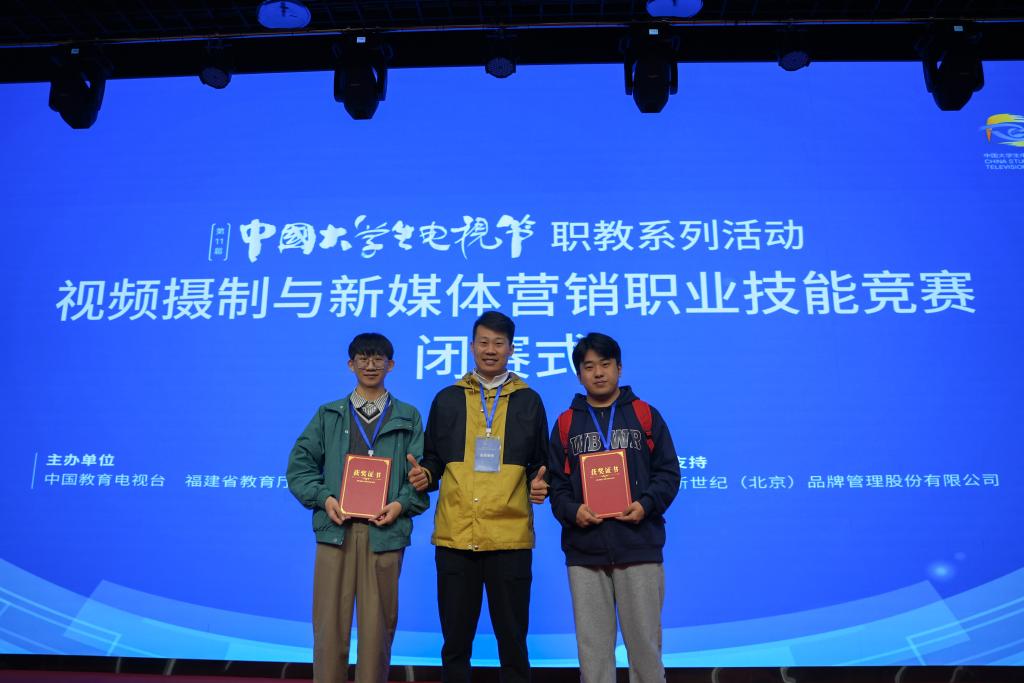本站讯(通讯员 王晓莉)为培养更多职业教育领域高素质传播人才,3月25日,由中国教育电视台、福建省教育厅联合举办的第十一届大学生电视节职教系列活动视频摄制与新媒体营销职业技能赛项在福州圆满落幕。申搏工商管理学院教师王亮带领夏季高考2021市场营销(校企合作)L01班学生康义宇、夏季高考2021电子商务P03班学生任海东参赛,荣获大赛团体二等奖,获奖选手同时获得1+X新媒体营销职业技能(中级)证书。