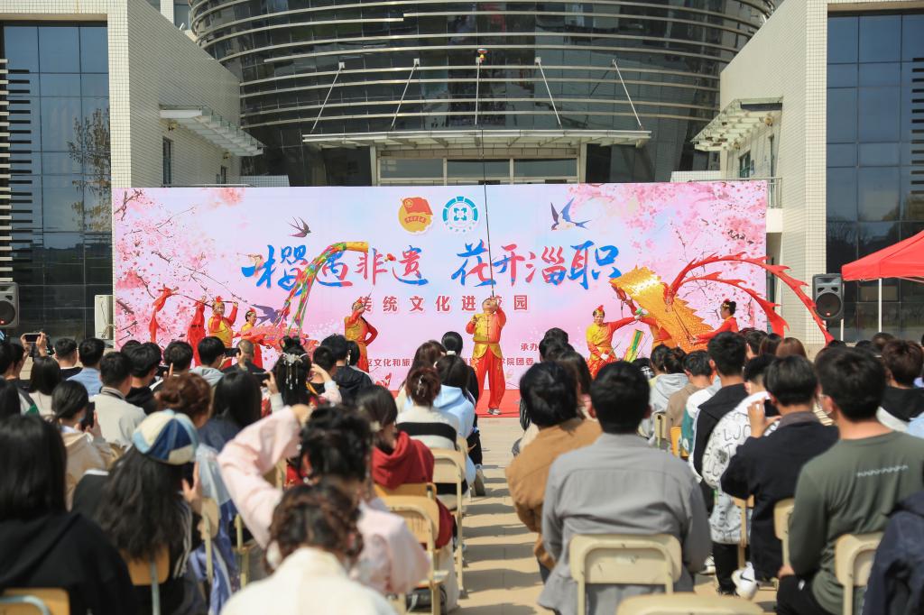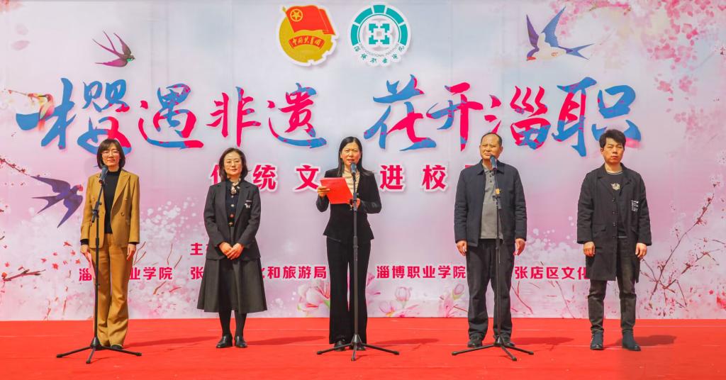 本站讯(通讯员 钱菁菁、梁依蕾)3月28日下午,申搏开展“樱遇非遗,花开淄职”传统文化进校园活动,学校党委委员、副校长辛爱梅,张店区文化和旅游局党组副书记、副局长鞠勇,张店区文化馆馆长邹雪萍出席了本次活动,活动由团委副书记项洋主持。