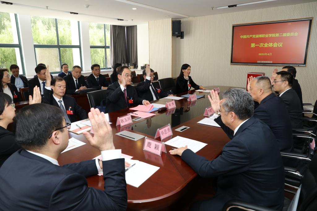 本站讯 4月16日下午,中国共产党淄博职业学院第二届委员会第一次全体会议在南校区尚德楼召开,新当选的党委委员和纪委委员参加会议,会议讨论并通过了党委第一次全体会议选举办法,选举产生了党委书记、副书记,通过了纪委一次全会选举产生的纪委书记、副书记。
