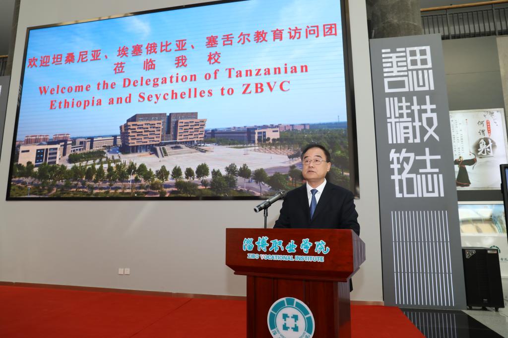 本站讯(通讯员 焦彬)4月26日,埃塞俄比亚、塞舌尔、坦桑尼亚三国教育部、劳工部6位副部级官员率领教育访团一行19人来淄博职业学院参观访问,听取学校情况介绍,观看学校办学成果和专业实习实训产品展览。省外办副主任孙业宝,市外办党组书记王冲,学校领导刘伟、孙启友、李厚永、鹿颖等参加活动。