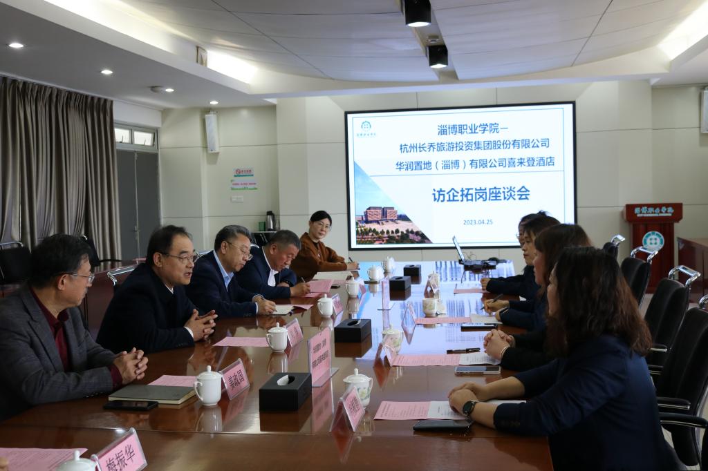 本站讯(通讯员 徐宁)4月25日上午,学校党委书记刘伟在北校区会议室与杭州长乔旅游投资集团股份有限公司人事部经理张岳丽一行、华润置地(淄博)有限公司喜来登酒店总经理张俊一行举行访企拓岗座谈会。副校长毕思勇、校企合作与就业指导中心负责人、文化旅游系负责人及相关人员参加了本次座谈会。