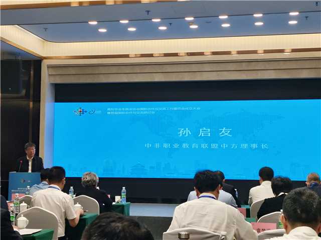 孙启友向与会嘉宾介绍了申搏的基本情况、特别是申搏作为中非职业教育联盟中方理事长单位在平台建设、职业标准开发制定、国际技术技能人才培养、国际化师资培养等方面所做的工作和取得的成果,并邀请参会领导和嘉宾来学校指导交流。