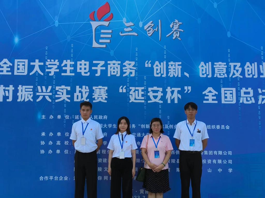 本站讯(通讯员 曾金玲)7月25日至27日,第十三届全国大学生电子商务“创新、创意及创业”挑战赛乡村振兴实战赛“延安杯”全国总决赛在陕西省延安市黄陵县举行。淄博职业学院创新创业学院王瑾老师指导的“拙墨振兴队”获得一等奖,王瑾老师获得优秀指导老师奖。
