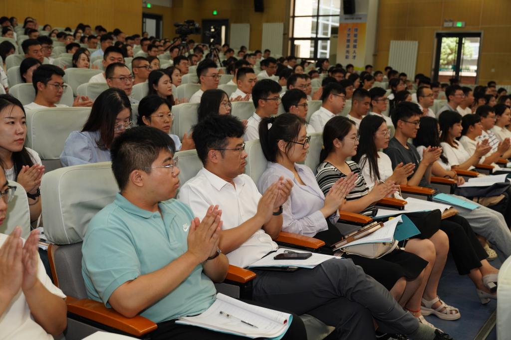 新进教师的加入壮大了学校师资队伍,为学校发展注入了新鲜血液,为学校持续高质量发展提供人才支撑。学校党委委员、组织人事处处长朱雯宣读了《培训须知》以及班主任、班委名单。组织人事处将通过分批次组织新进教师业务培训,提高新进教师的政治素质和业务能力,帮助新进教师尽快完成角色转变,胜任岗位职责。 学校领导班子成员出席了新进教师业务培训开班仪式,2021年10月以后入职的337名教师及班主任参加了新进教师业务培训班开班仪式。
