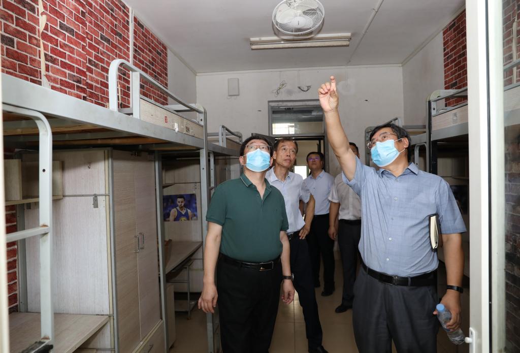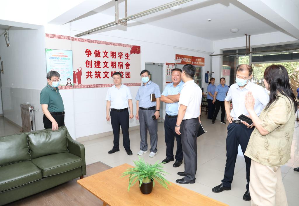 本站讯(通讯员 魏伟) 为确保2023年秋季开学各项工作有序开展,8月24日上午,学校党委副书记、校长孙启友,党委副书记耿玉河,党委委员、副校长张成山,党委委员、副校长李厚永,党委委员、宣传统战部部长鹿颖以及相关部门负责人组成检查组,深入一线开展实地检查工作,为新学期如期顺利开学,给师生创造良好的学习、工作和生活环境保驾护航。