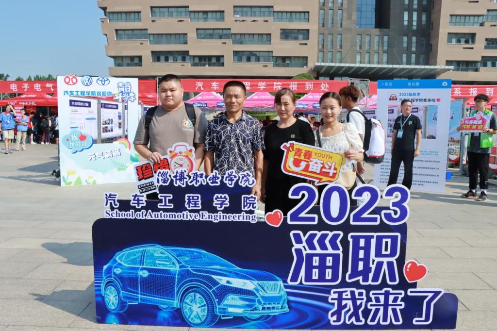 汽车工程学院设置多个专业元素打卡点,家长和新生共同合影纪念难忘时刻,形成了家文化的德育浸润和专业元素的相互衔接。